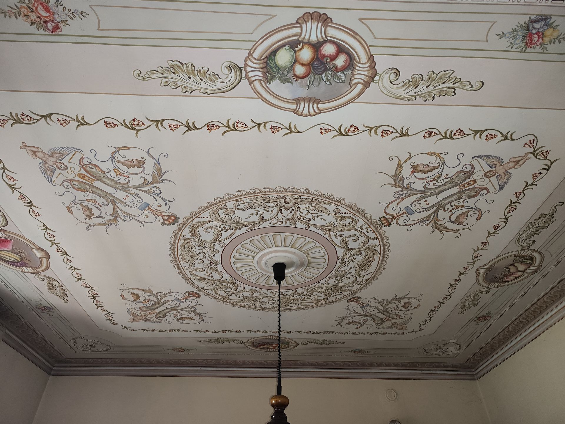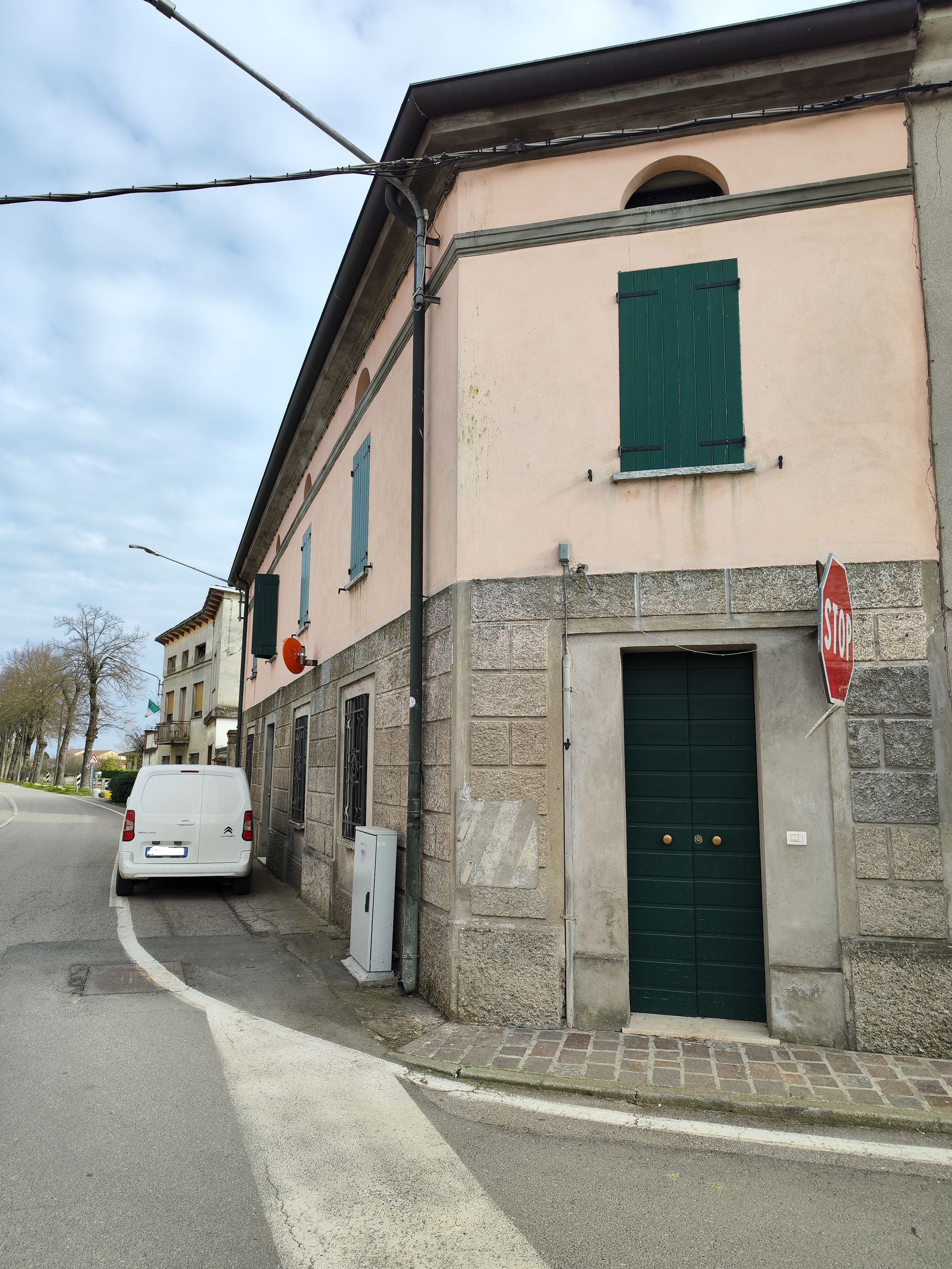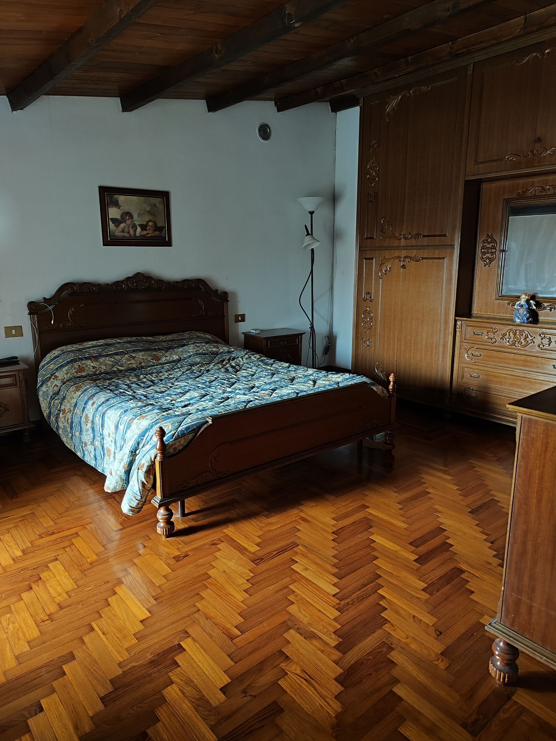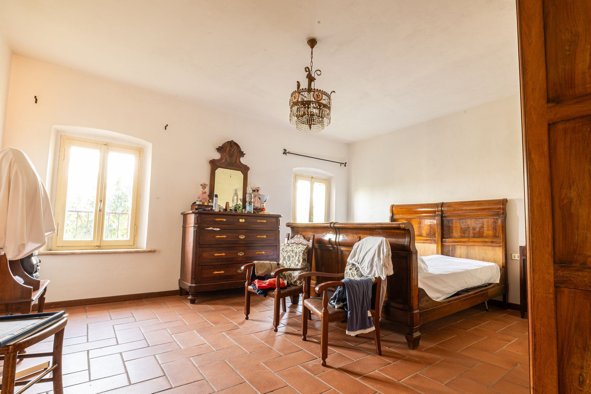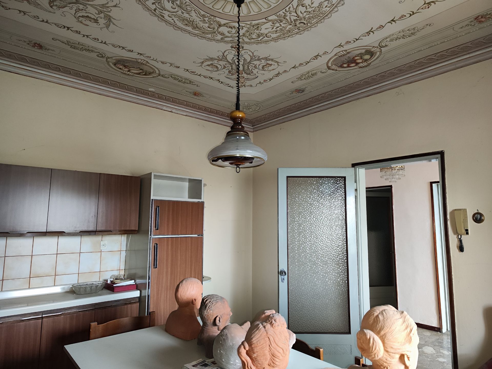 Questo immobile è costituito da due appartamenti, indipendenti fra loro, con annessi locali ad uso autorimessa. Il primo appartamento, sito al piano rialzato, comprende il corridoio d'ingresso, cucina abitabile, soggiorno, due camere da letto matrimoniali, un bagno e, tramite una scala interna, si accede al piano seminterrato adibito interamente a servizi (ripostiglio, cantina, locale sgombero.. . ). Le camere di questo appartamento presentano i soffitti affrescati.
