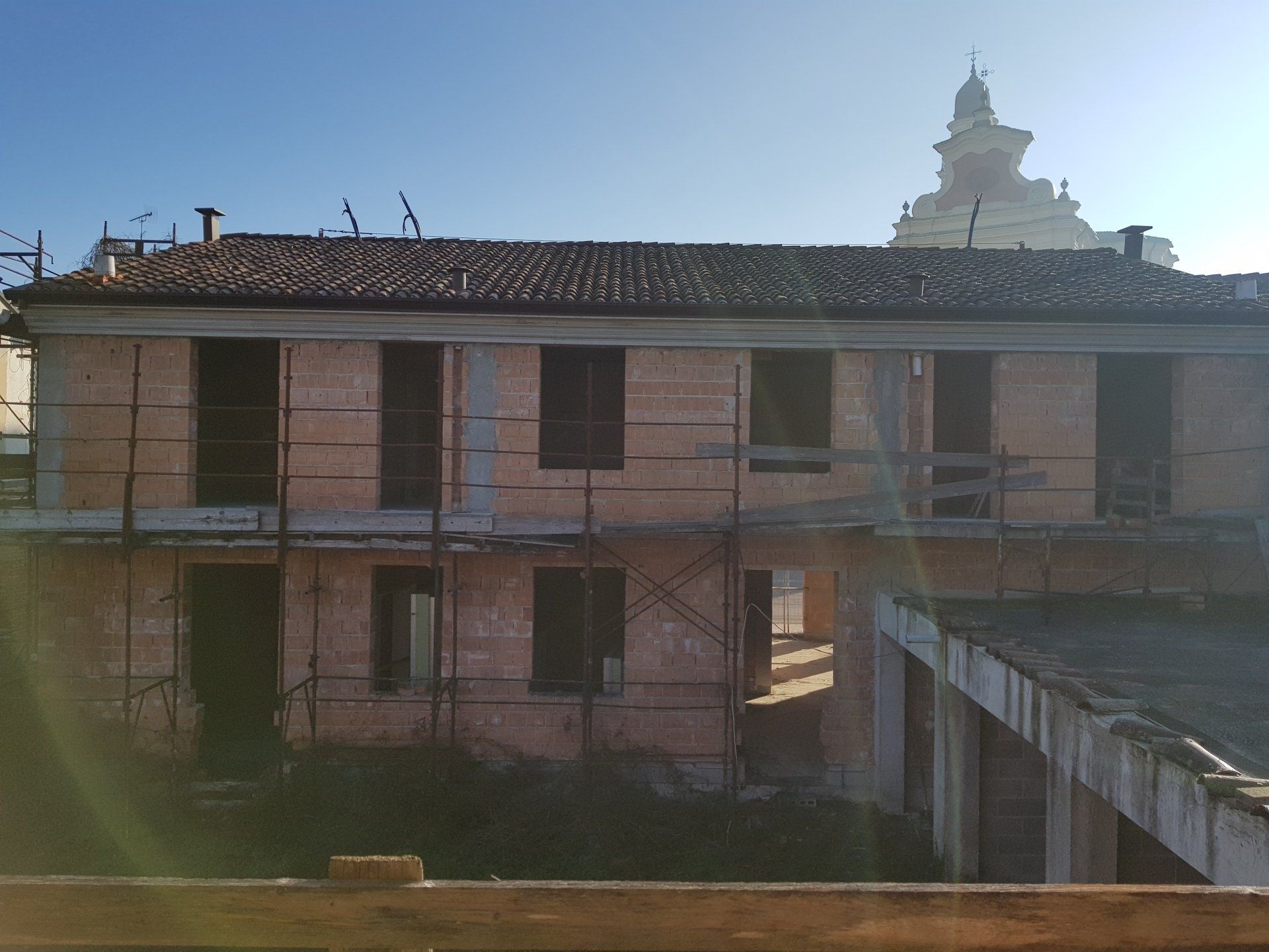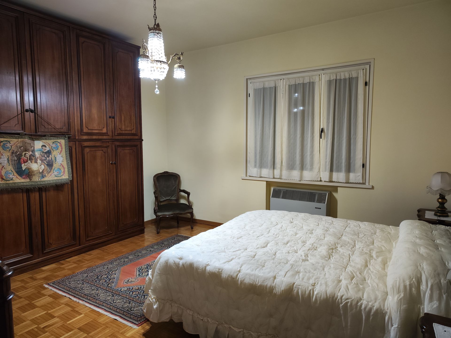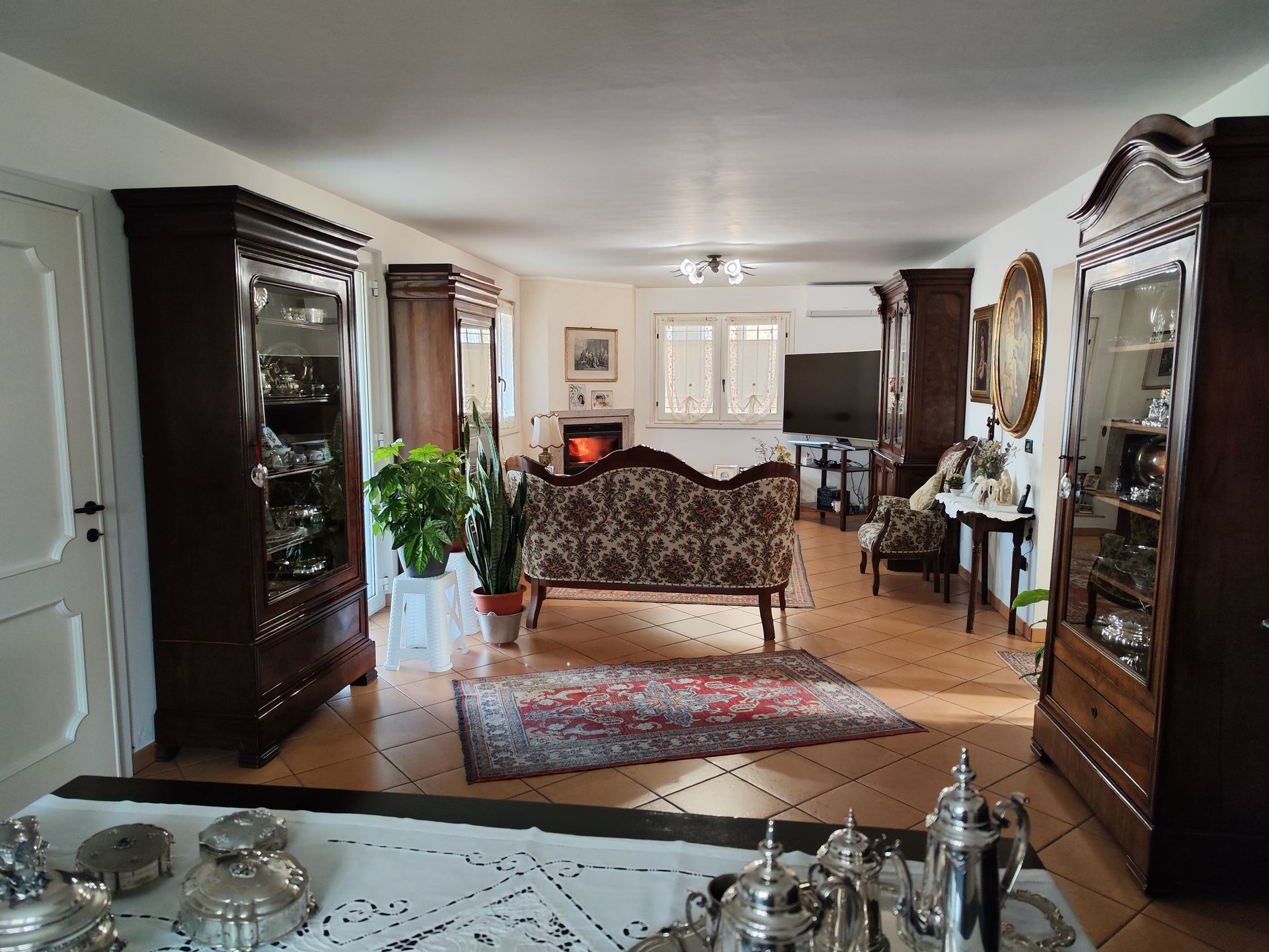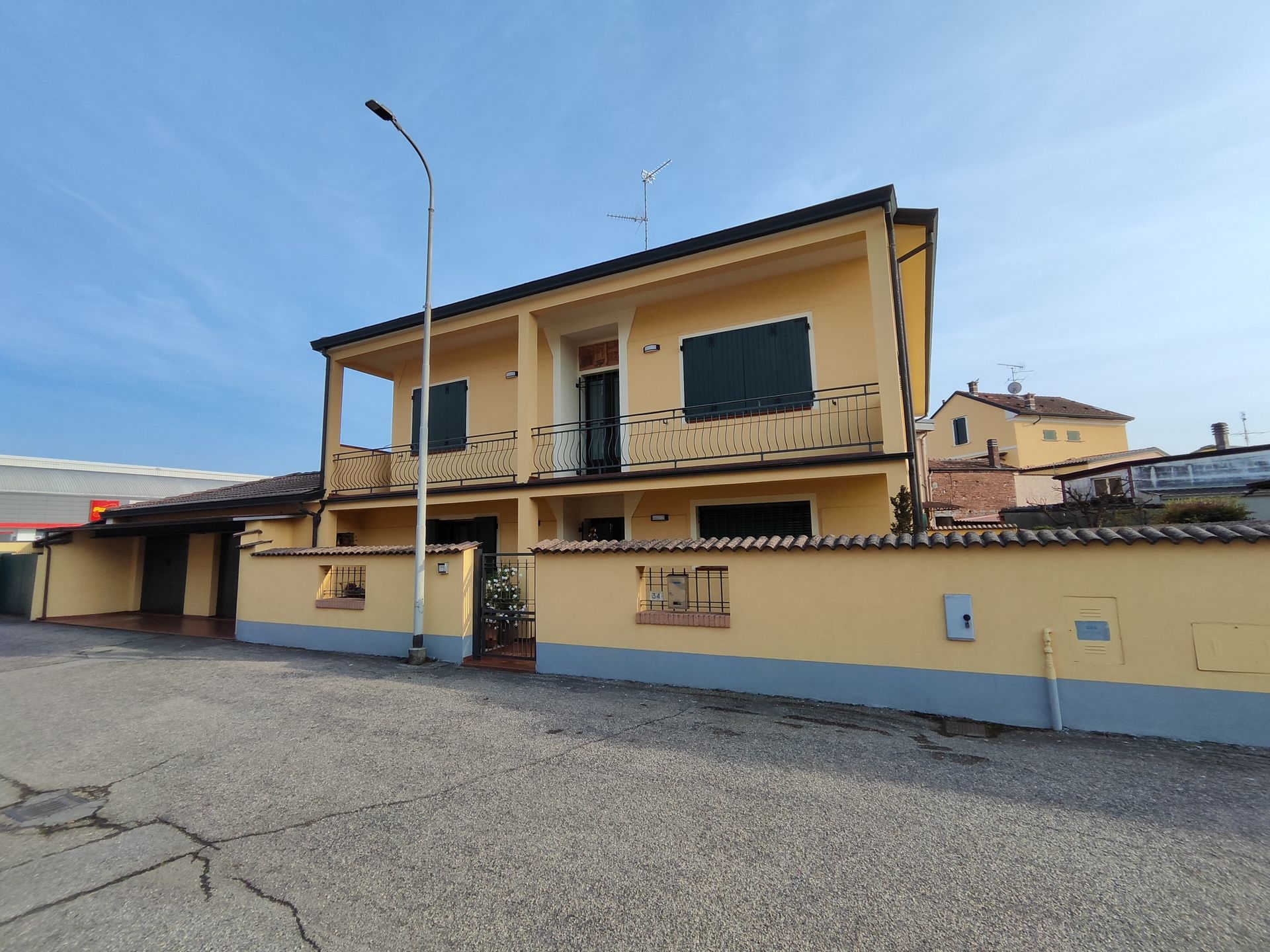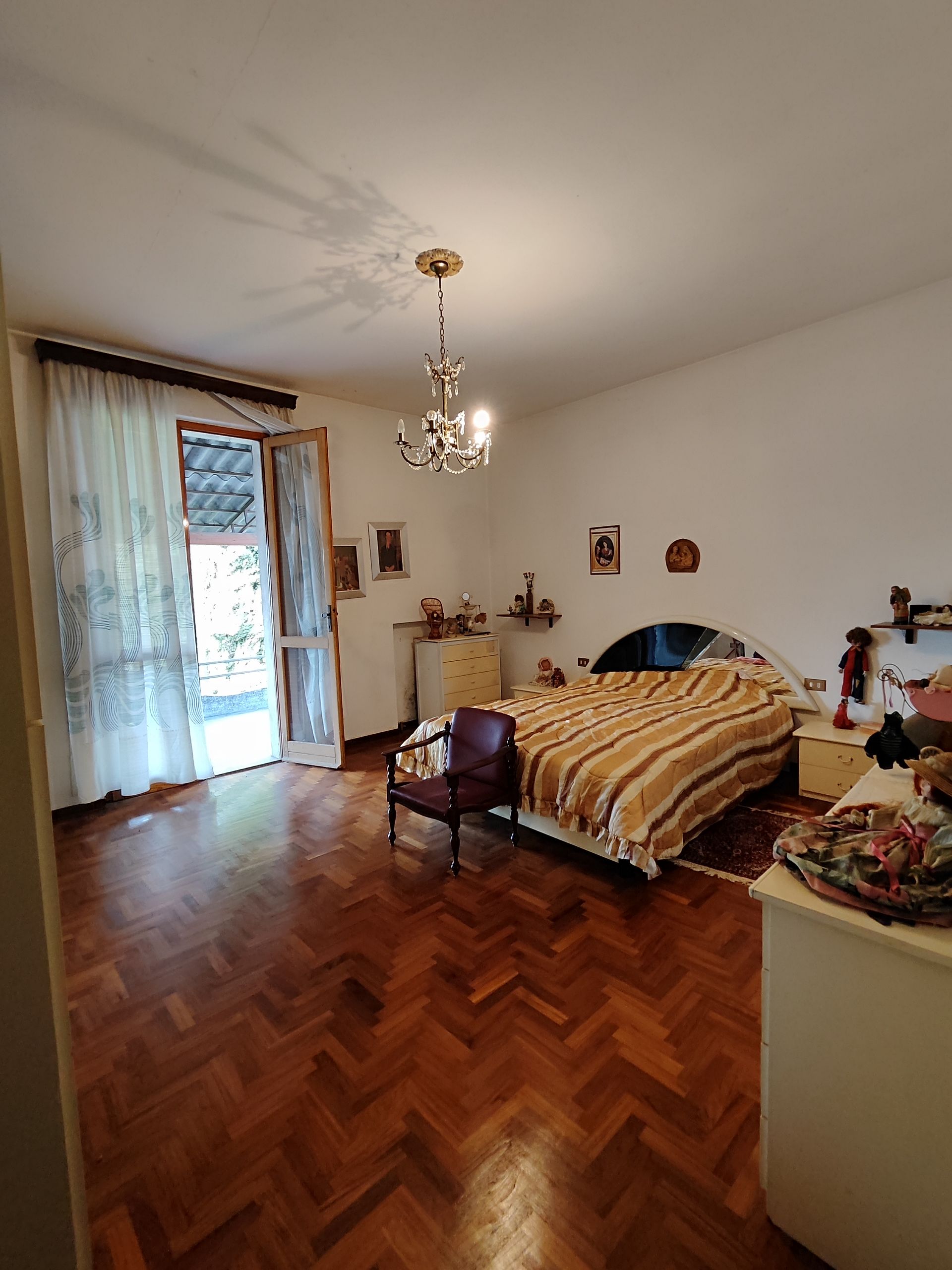 Questo immobile è costituito da due appartamenti, indipendenti fra loro, con annessi locali ad uso autorimessa. Il primo appartamento, sito al piano rialzato, comprende il corridoio d'ingresso, cucina abitabile, soggiorno, due camere da letto matrimoniali, un bagno e, tramite una scala interna, si accede al piano seminterrato adibito interamente a servizi (ripostiglio, cantina, locale sgombero.. . ). Le camere di questo appartamento presentano i soffitti affrescati.