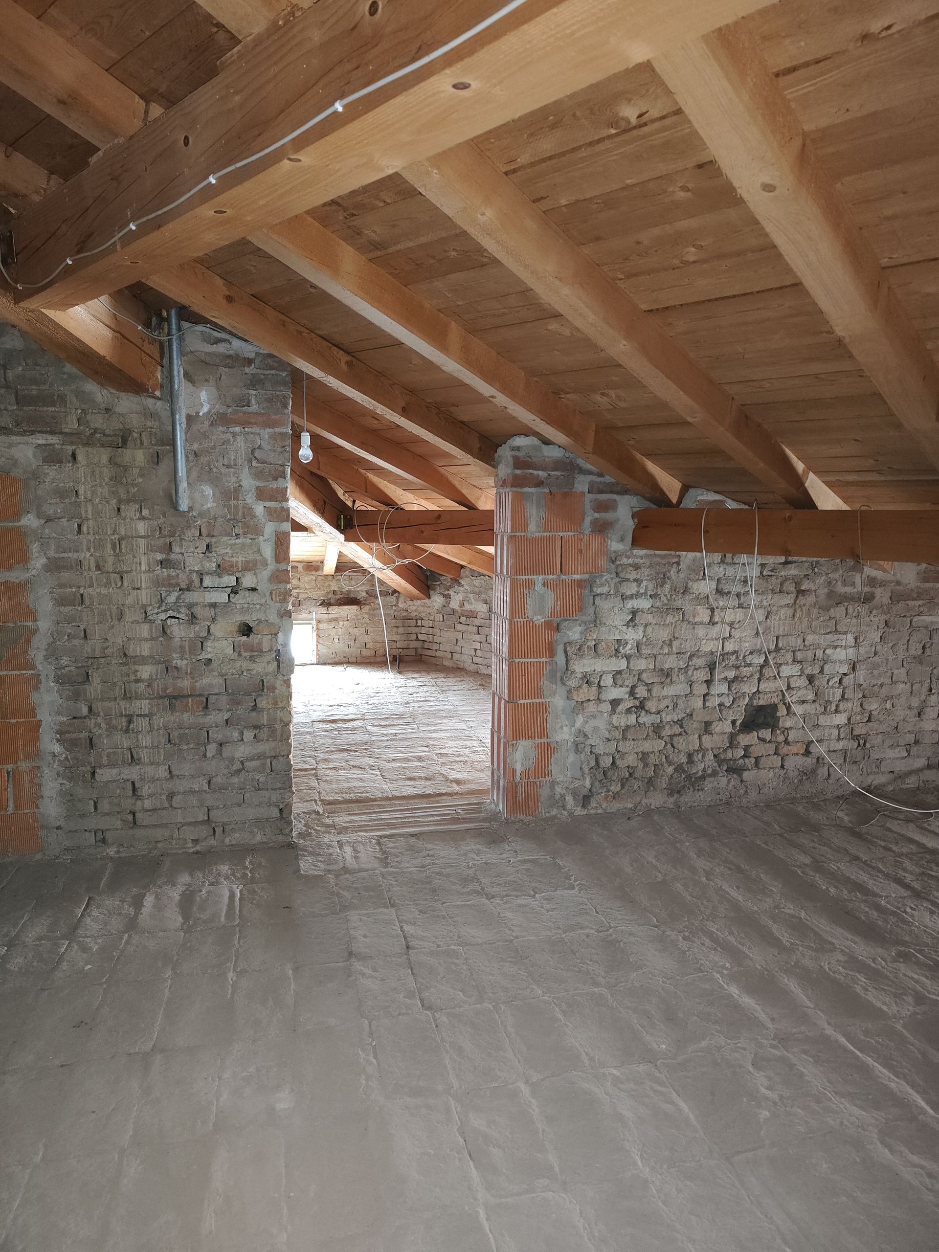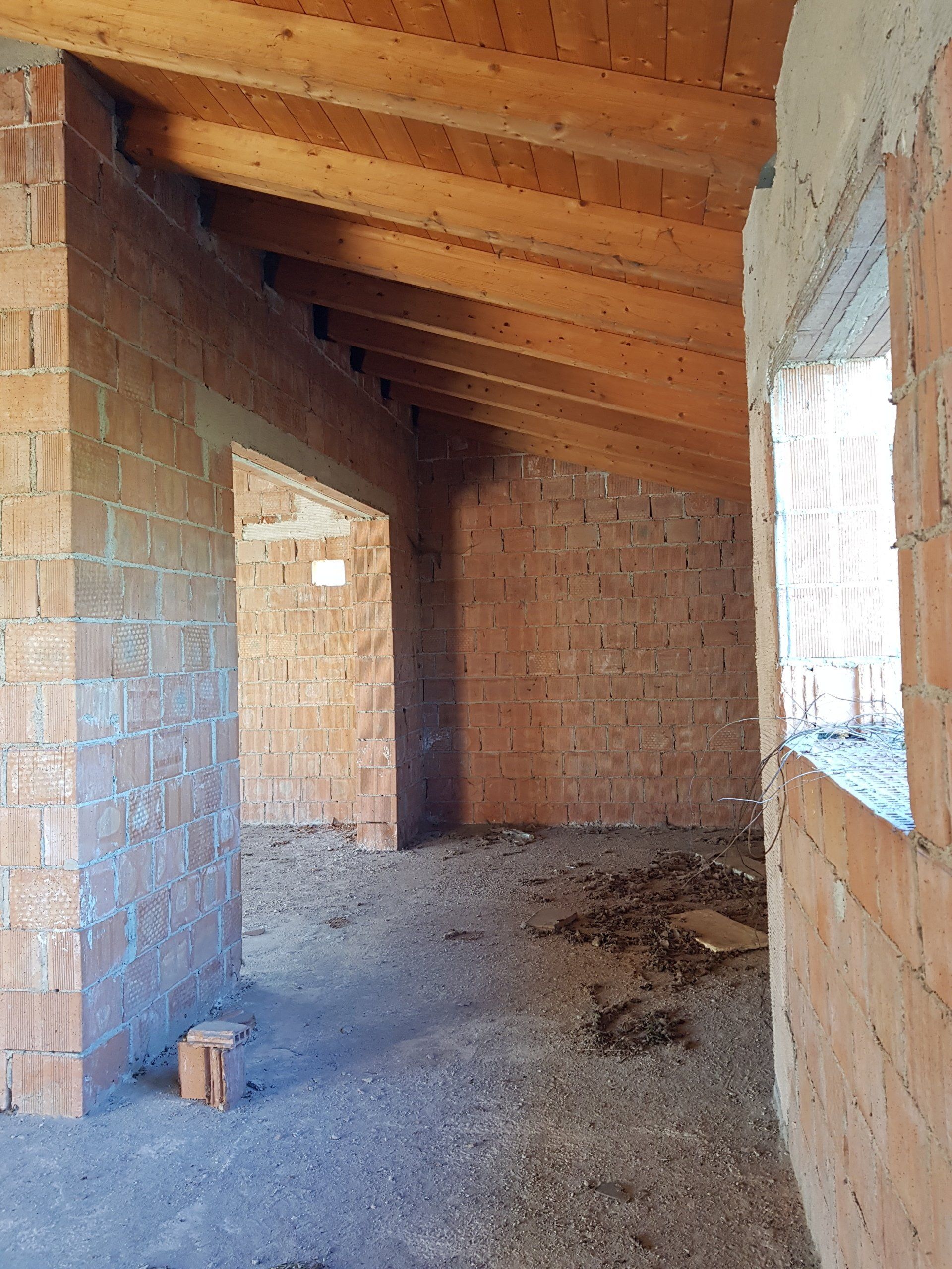 La parte abitativa è composta da un ampio ingresso, soggiorno, sala da pranzo, cucina e bagno al piano terra e quattro camere e un ampio bagno al primo piano. Completa la parte abitativa un ampio portico, la cantina e una splendida mansarda al grezzo.