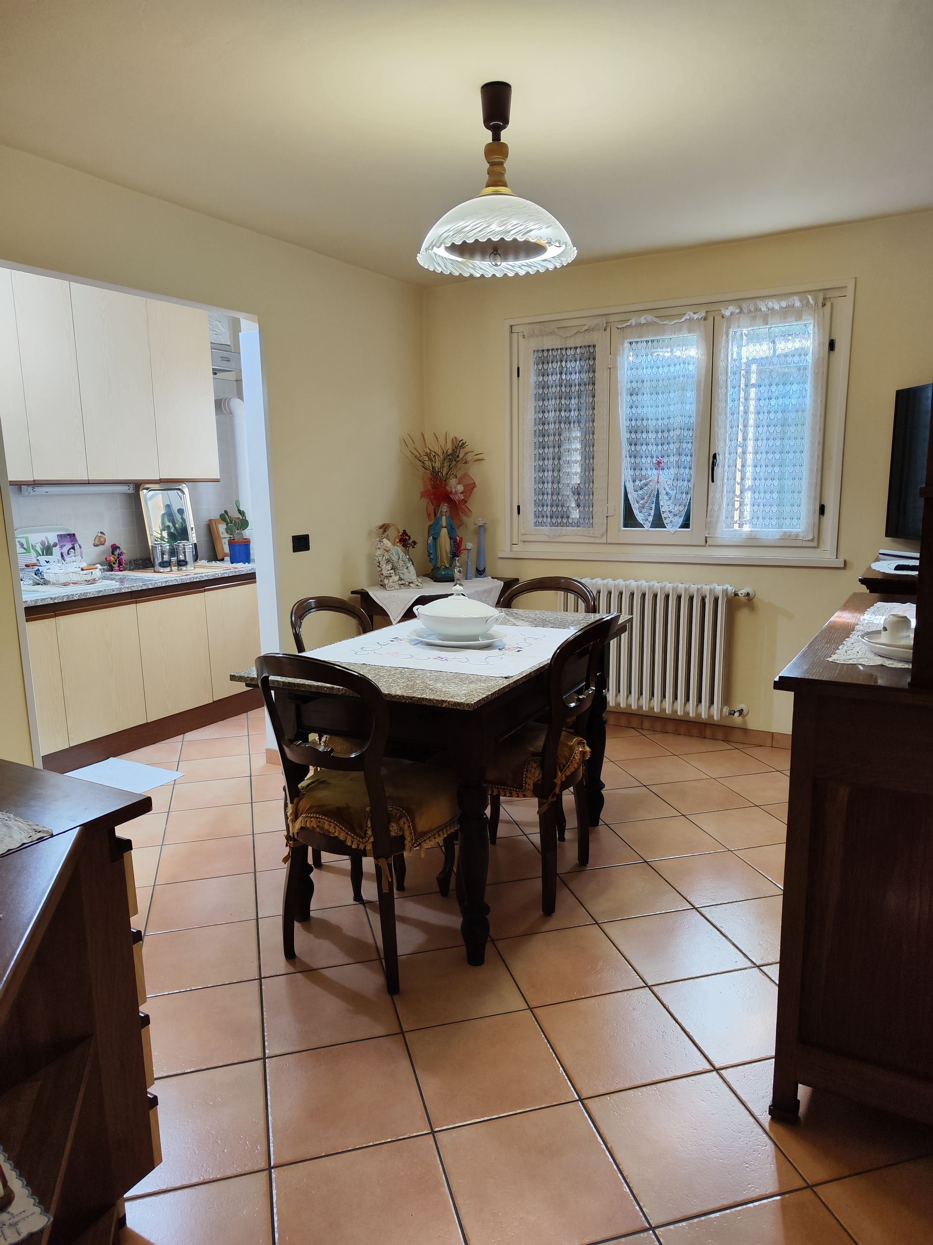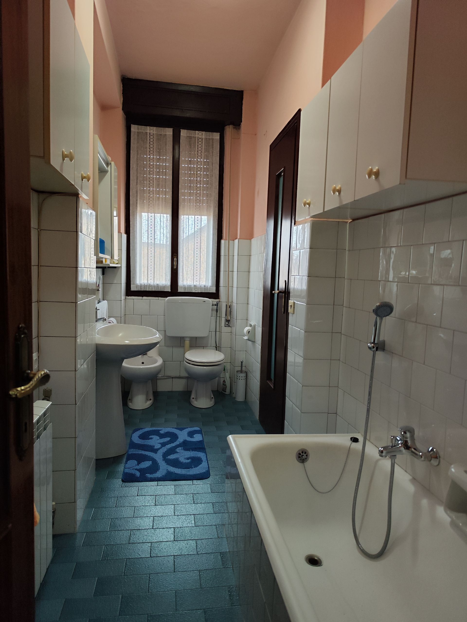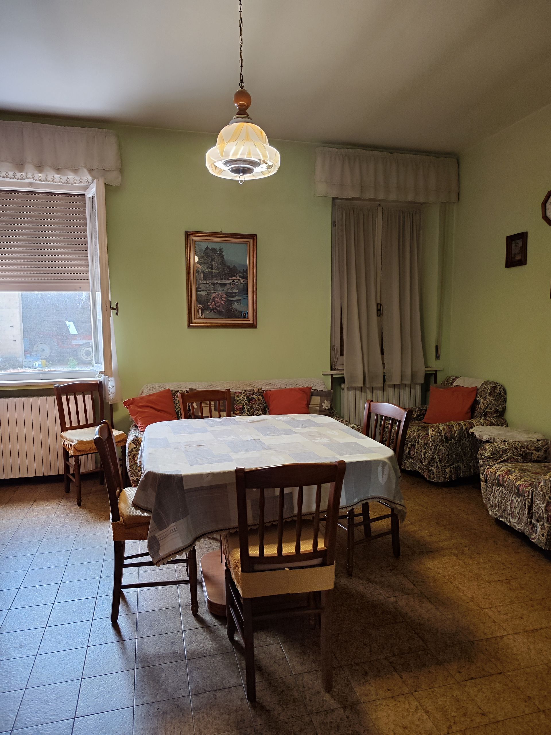 L'appartamento si trova in buono stato di manutenzione ed è composto da un piccolo ingresso, da una cucina funzionale, un apio salone, due camere da letto, bagno con vasca e doccia, un balcone al quale si accede sia dalla cucina che dal soggiorno e la loggia in una camera da letto. A completare l'immobile c'è una grande cantina che, pur essendo nel piano seminterrato, è asciutta e pavimentata e un garage al piano terreno, anch'esso pavimentato. Tutti gli impianti sono autonomi.