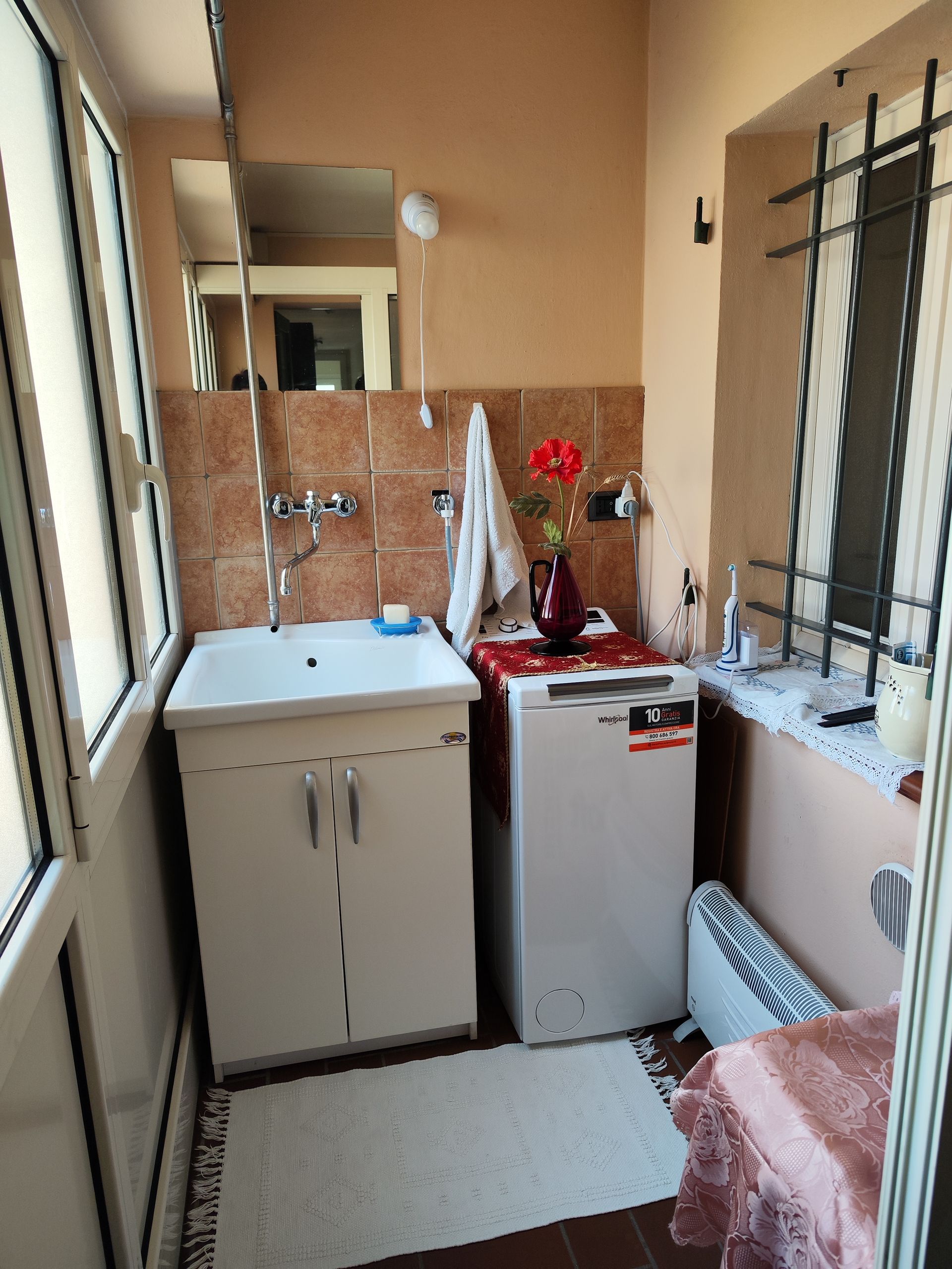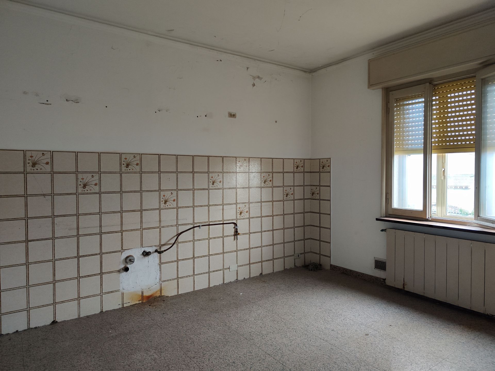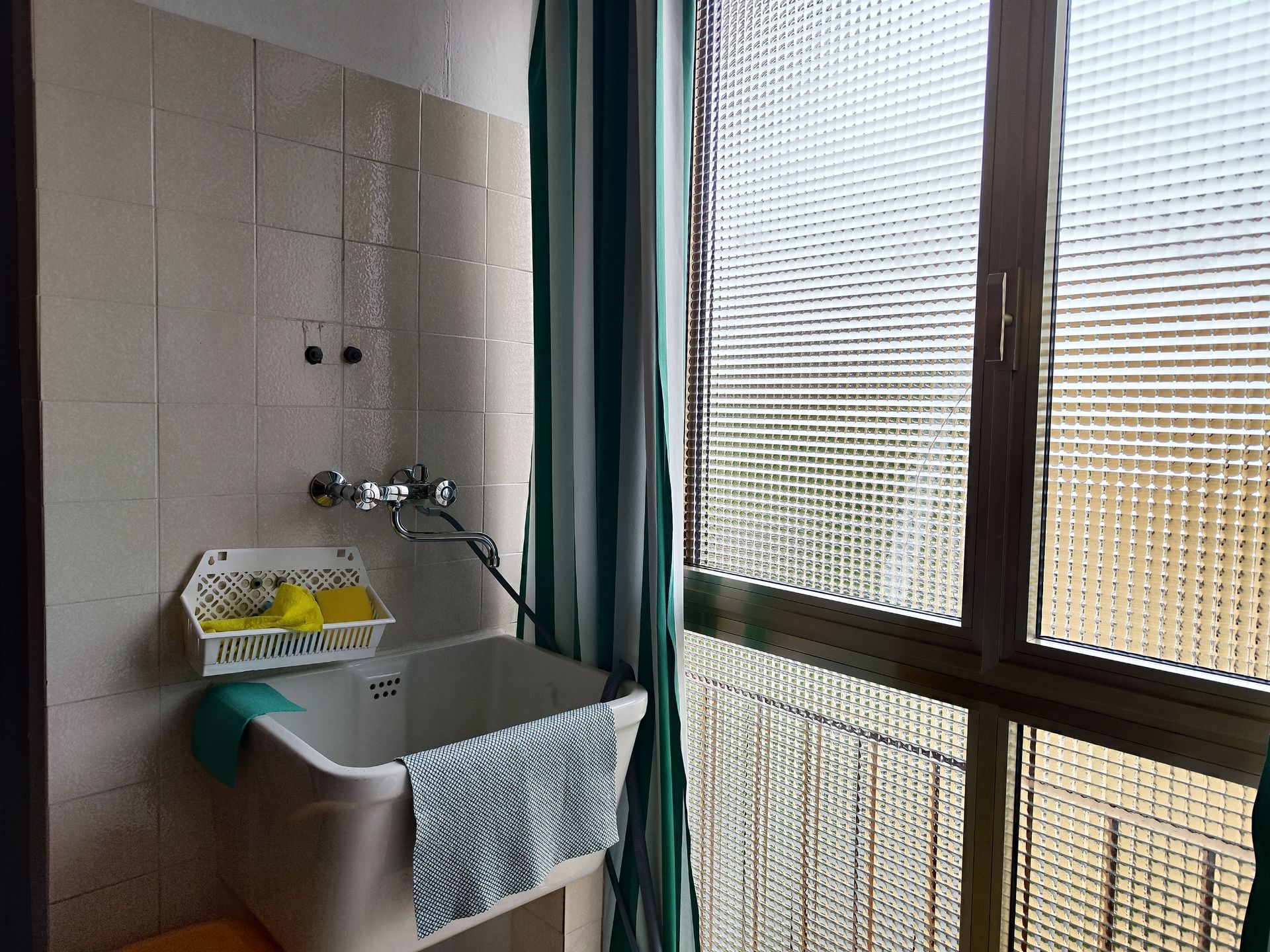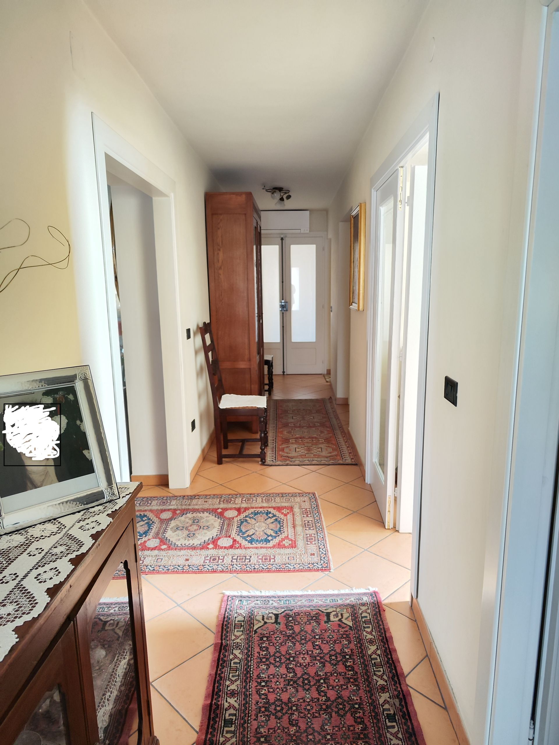 L'appartamento si trova in buono stato di manutenzione ed è composto da un piccolo ingresso, da una cucina funzionale, un apio salone, due camere da letto, bagno con vasca e doccia, un balcone al quale si accede sia dalla cucina che dal soggiorno e la loggia in una camera da letto. A completare l'immobile c'è una grande cantina che, pur essendo nel piano seminterrato, è asciutta e pavimentata e un garage al piano terreno, anch'esso pavimentato. Tutti gli impianti sono autonomi.