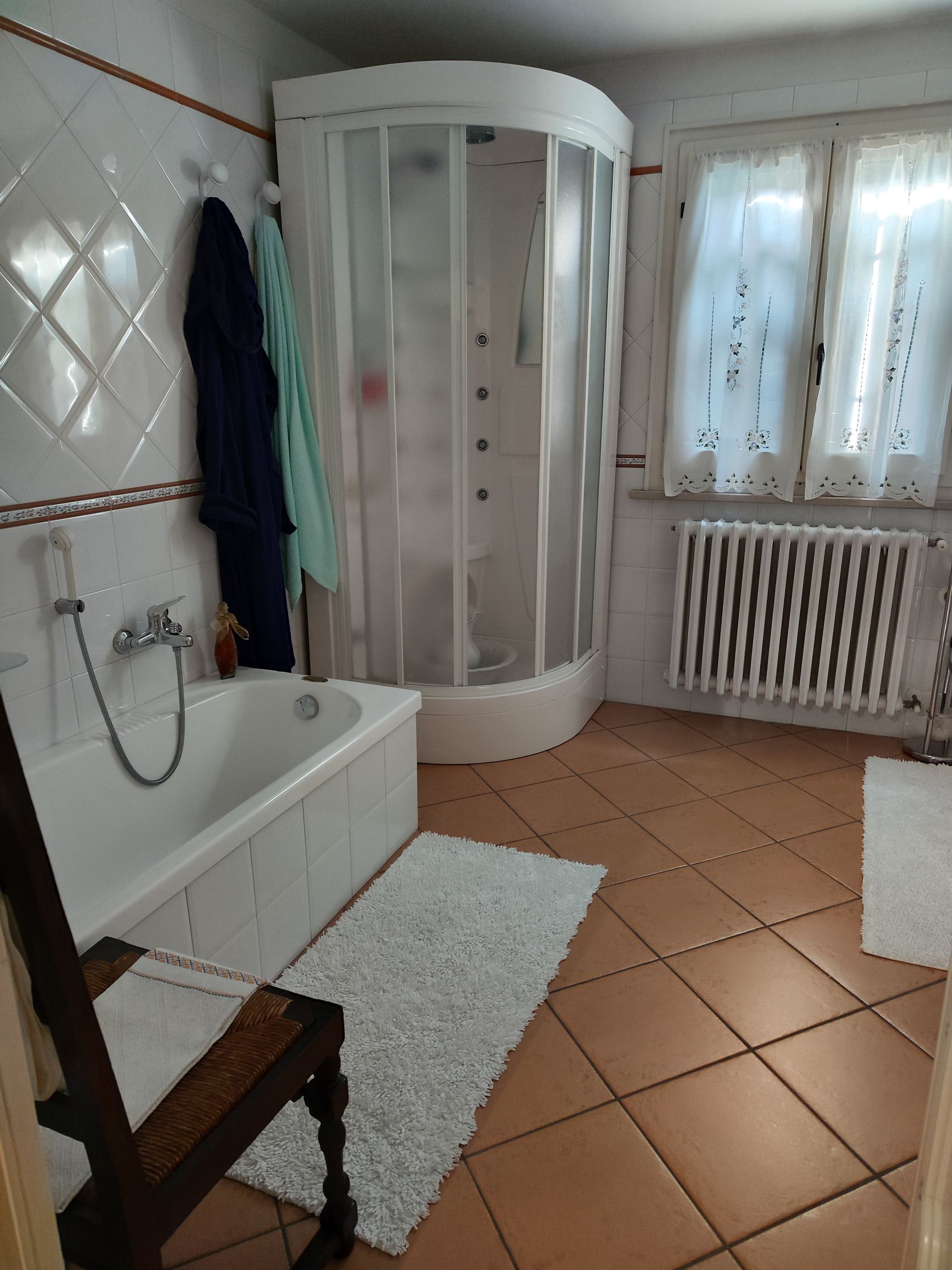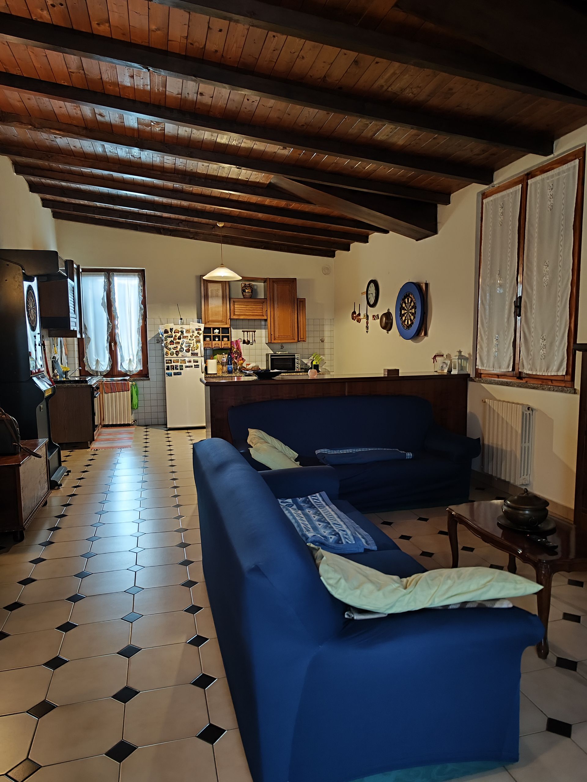 Porzione di casa ristrutturata nel 2005, mantenendo i materiali tipici delle case di un tempo: travi in legno sabbiate e trattate e pavimenti nelle camere da letto in pietra.