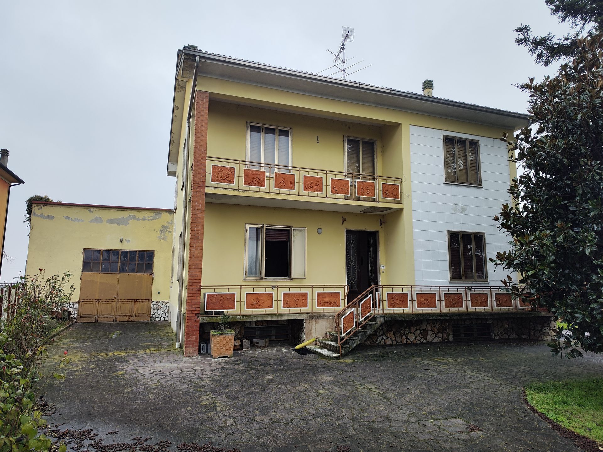 casa completamente indipendente contornata da giardino, composta da salone, cucina, bagno, locale caldaia e garage al piano terra, quattro camere e bagno al primo piano e la scala prosegue fino al sottotetto.